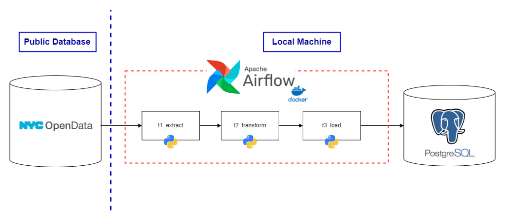 - Apache Airflow – we use Apache Airflow to orchestrate all tasks to make the whole process run automatically. Apache Airflow is suitable for batch process workflow orchestration. Since Apache Airflow is MacOS-based software, we need to implement them into our projects through Docker container.