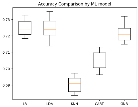 plt.title('Accuracy Comparison by ML model')