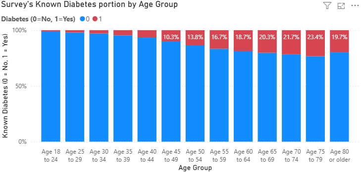 - Known Diabetes portion by Age grouup