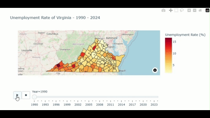 title="Unemployment Rate of Virginia - 1990 - 2024",